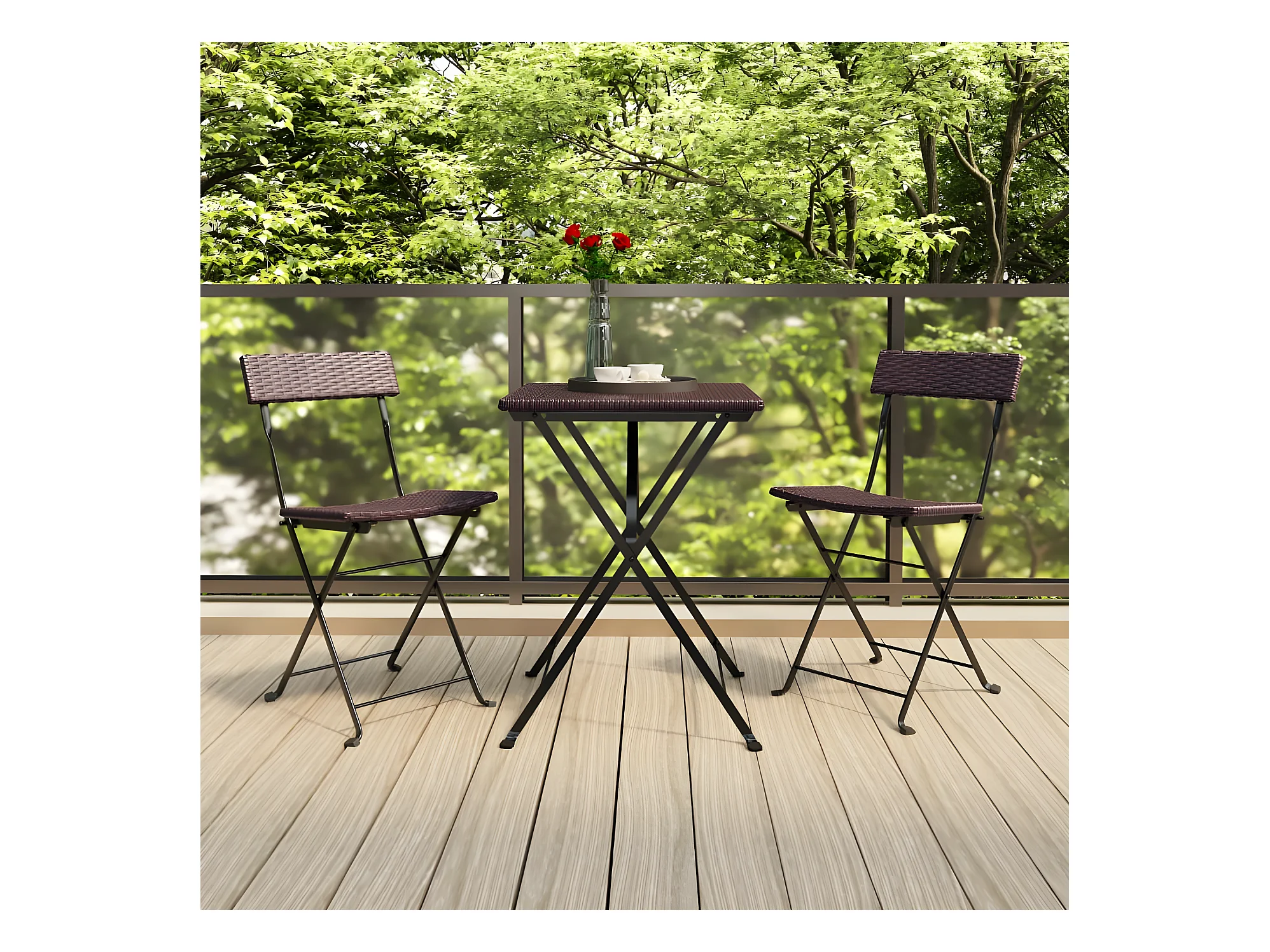 3 pcs conjunto de bistrô dobrável vime PE castanho PT405341