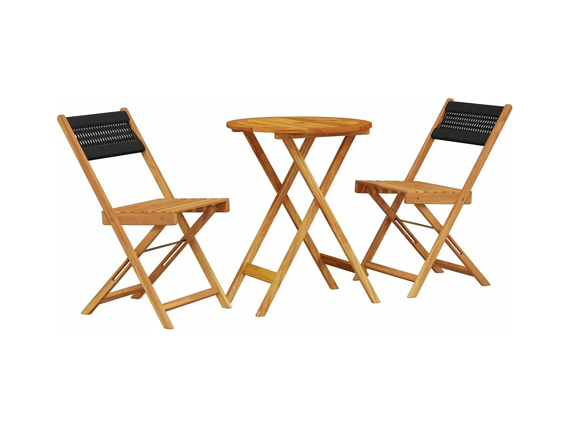 3 pcs conjunto de bistrô vime PE/madeira de acácia maciça preto PT179319