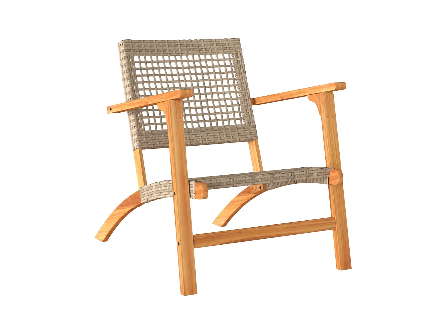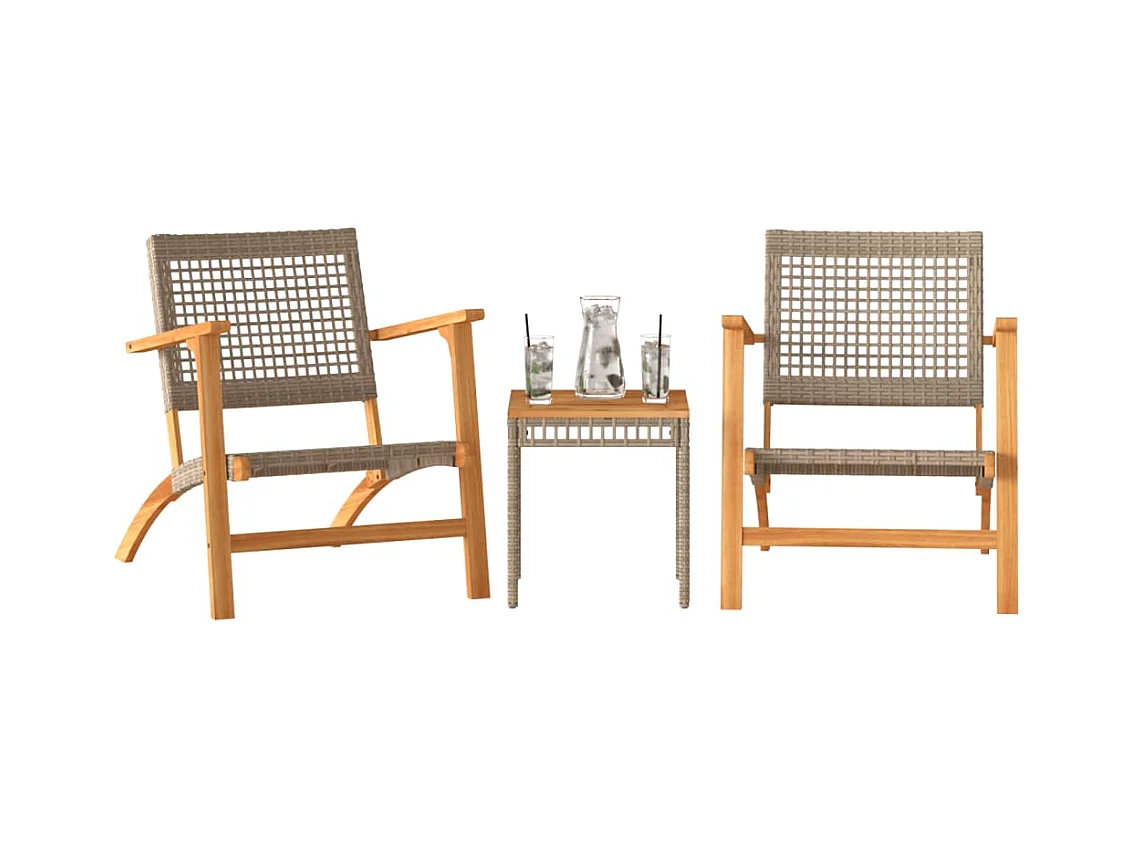 3 pcs conjunto de bistrô vime PE/madeira de acácia maciça bege PT164508