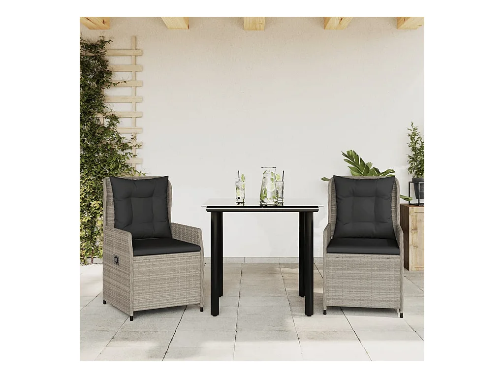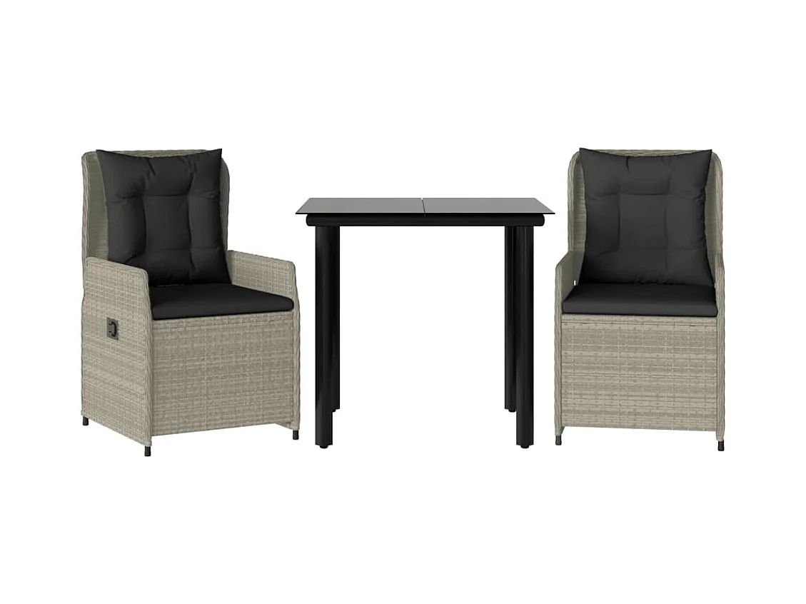 3 pcs conjunto jantar jardim c/ almofadões vime PE/vidro cinza PT299101