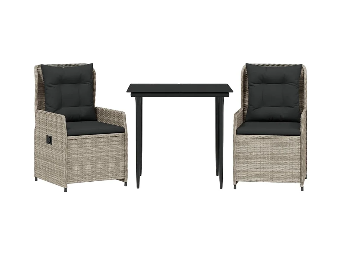 3 pcs conjunto jantar jardim c/ almofadões vime PE/vidro cinza PT299101