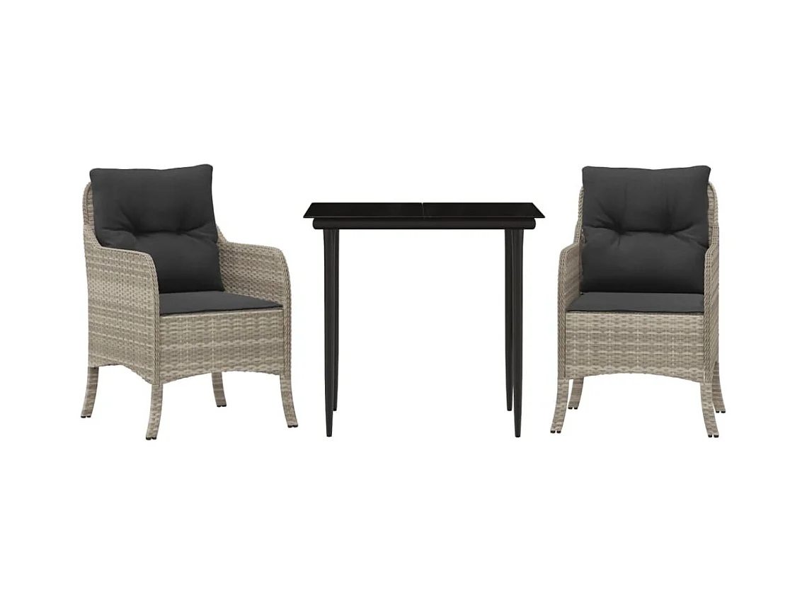 3 pcs conjunto jantar jardim c/ almofadões vime PE/acácia cinza PT301925