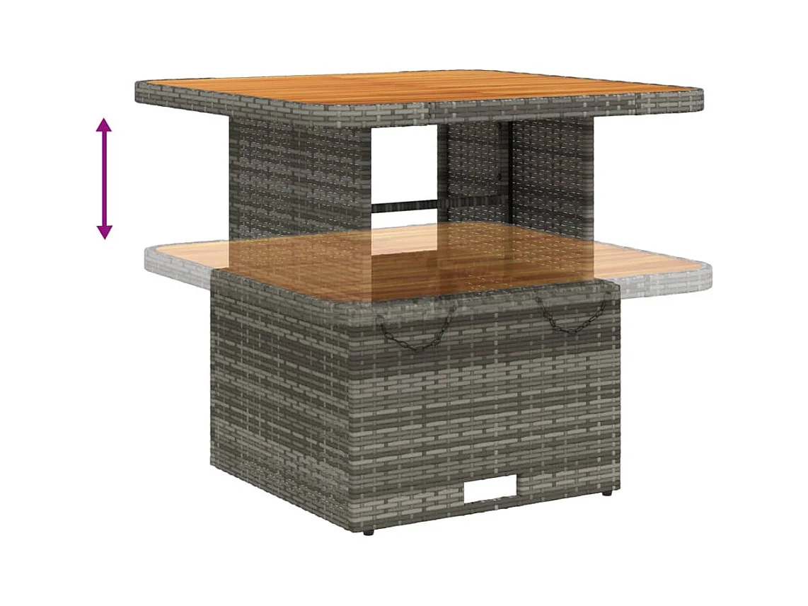 5 pcs conjunto de jantar p/ jardim c/ almofadões vime PE cinza