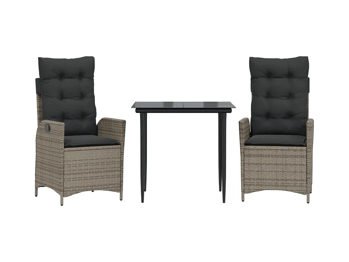 3 pcs conjunto de jantar p/ jardim c/ almofadões vime PE cinza PT333514