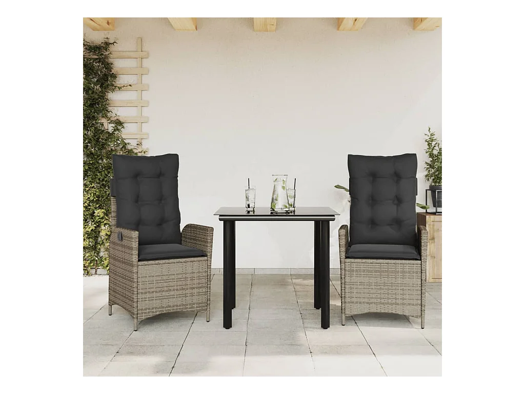 3 pcs conjunto bistrô com almofadões vime PE cinzento claro PT425128