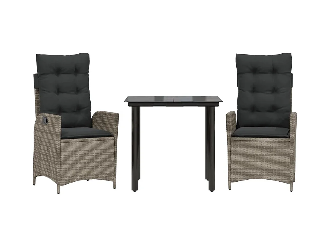 3 pcs conjunto de jantar p/ jardim c/ almofadões vime PE cinza PT333514