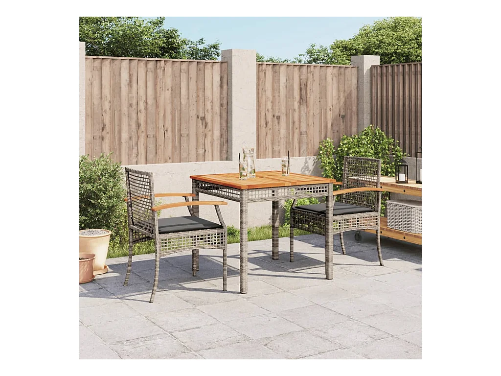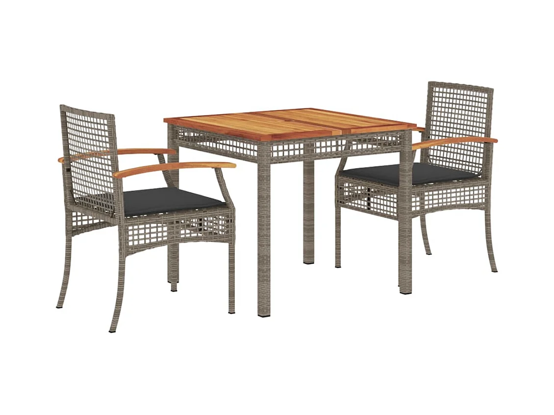 3 pcs conjunto de jantar p/ jardim c/ almofadões vime PE cinza PT681011