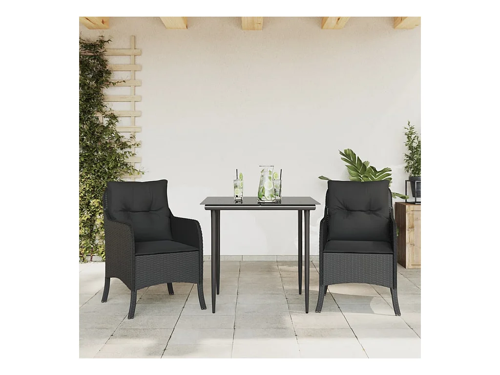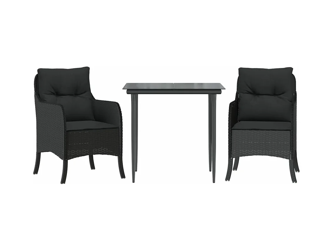 3 pcs conjunto de jantar p/ jardim c/ almofadões vime PE preto PT189383