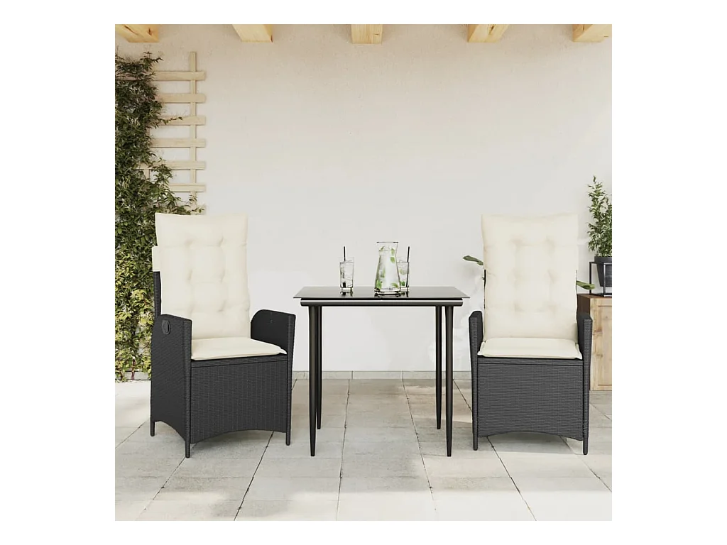 3 pcs conjunto de jantar p/ jardim c/ almofadões vime PE preto PT189383