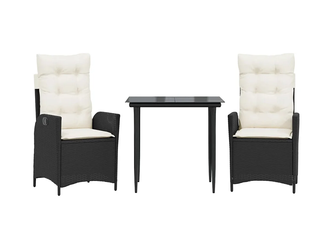 3 pcs conjunto de jantar p/ jardim c/ almofadões vime PE preto PT283381