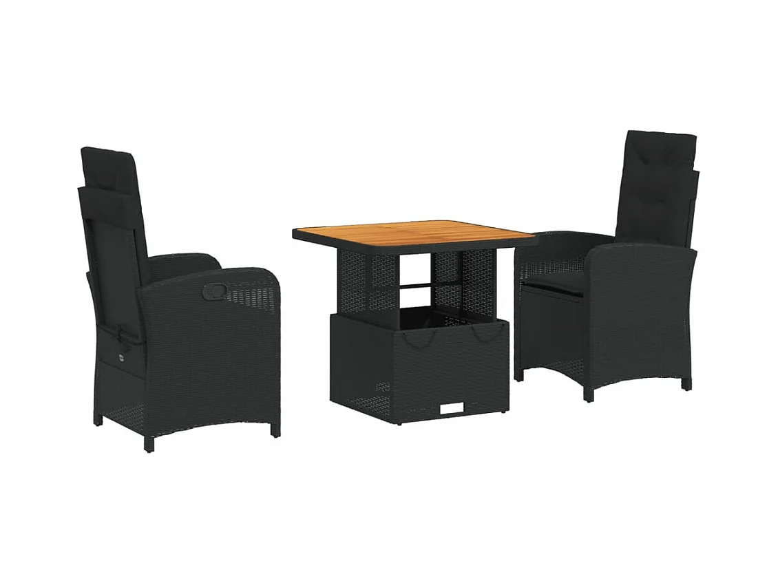 3 pcs conjunto de jantar p/ jardim c/ almofadões vime PE preto PT988303