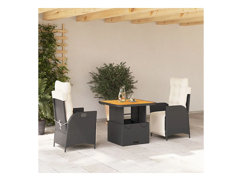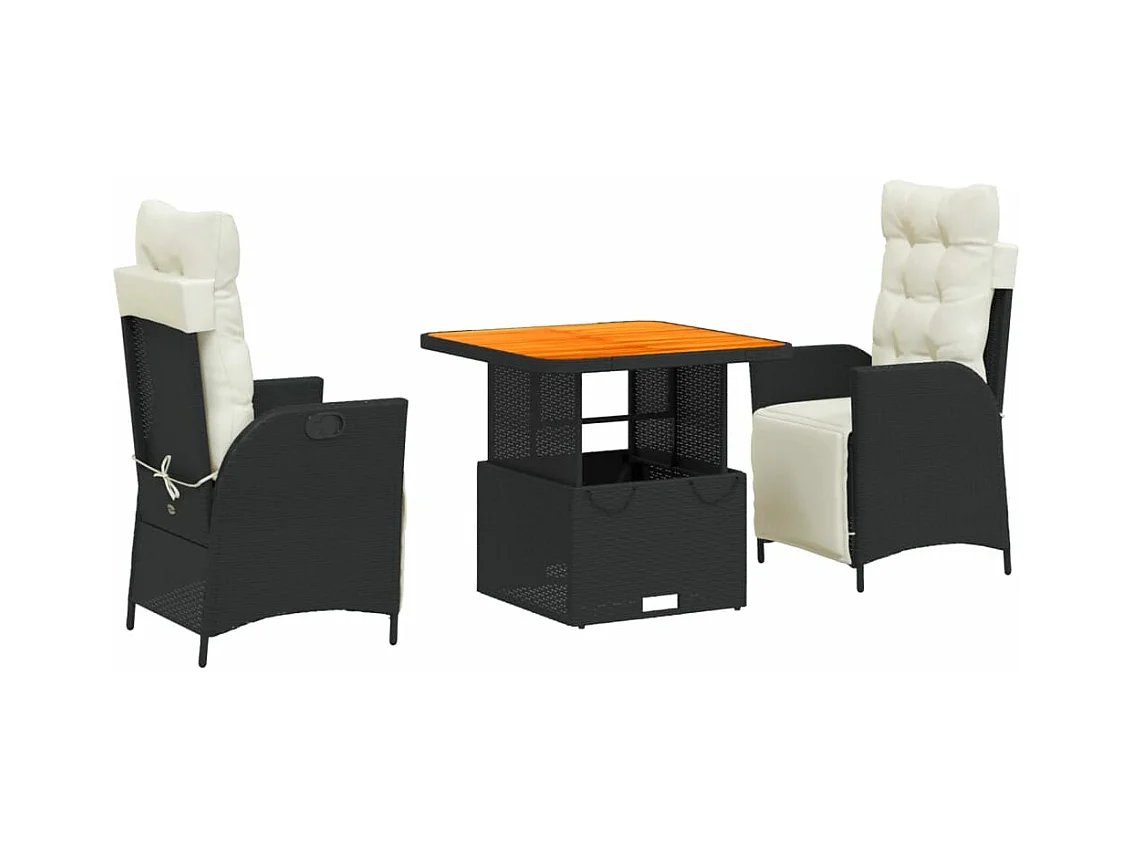 3 pcs conjunto de jantar p/ jardim c/ almofadões vime PE preto PT191178