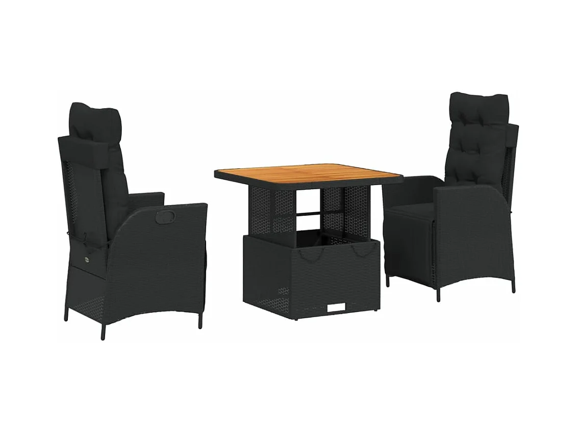 3 pcs conjunto de jantar p/ jardim c/ almofadões vime PE preto PT191178