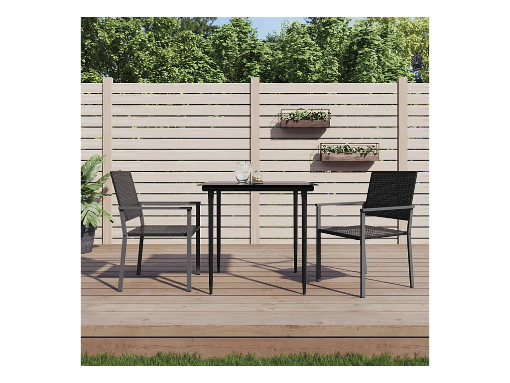 3 pcs conjunto de jantar para jardim vime PE e vidro preto PT668367