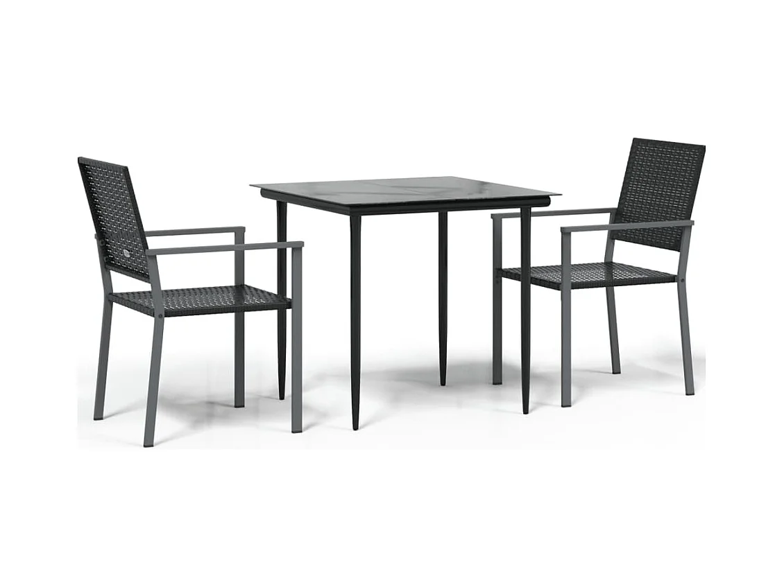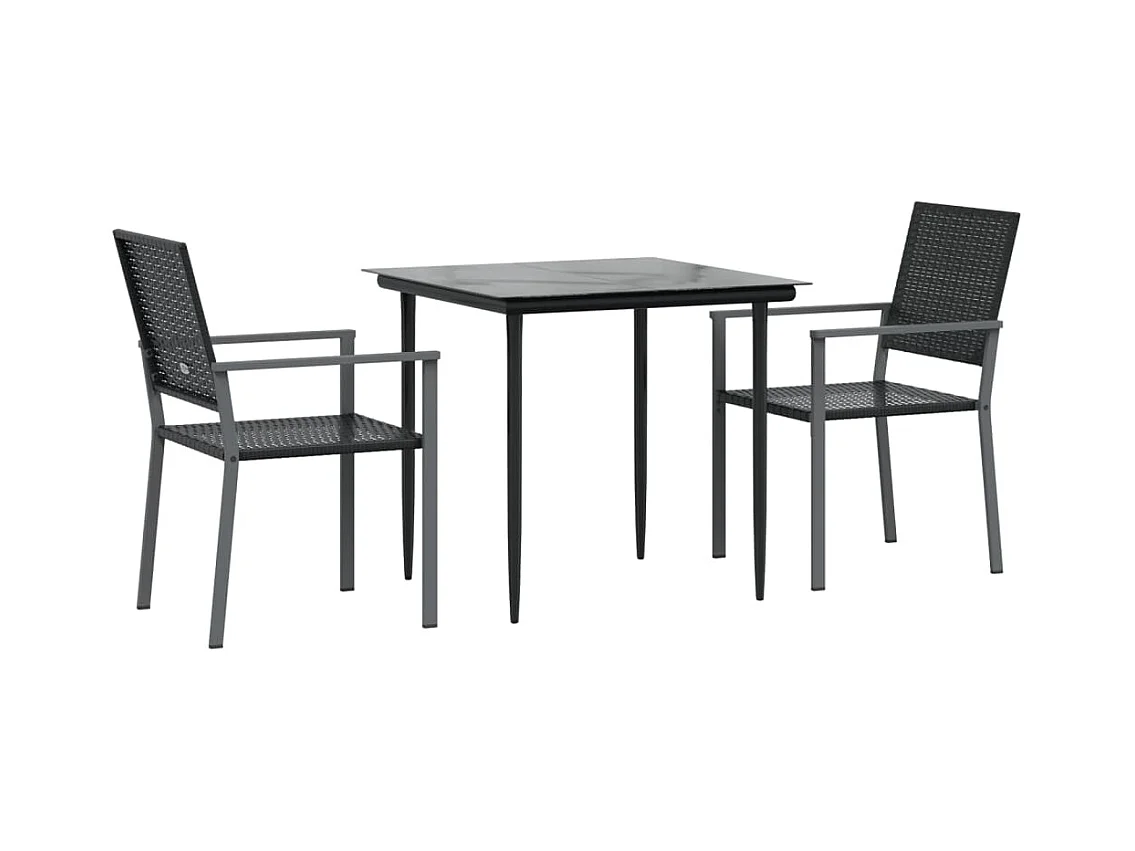 3 pcs conjunto de jantar para jardim preto PT408668