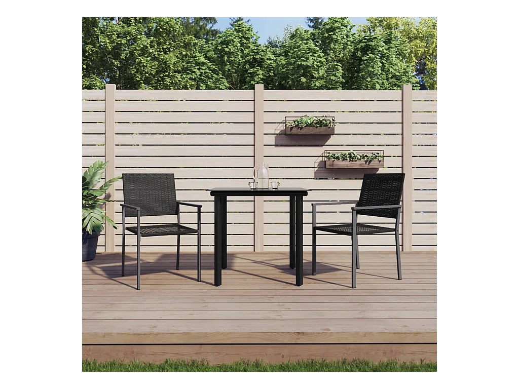 3 pcs conjunto de jantar para jardim vime PE e vidro preto PT668367