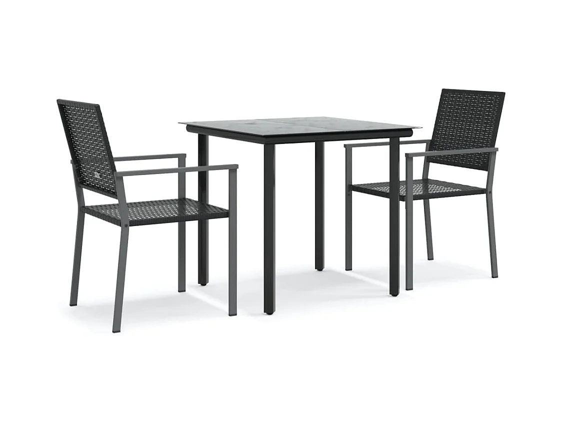 3 pcs conjunto de jantar para jardim preto PT408668