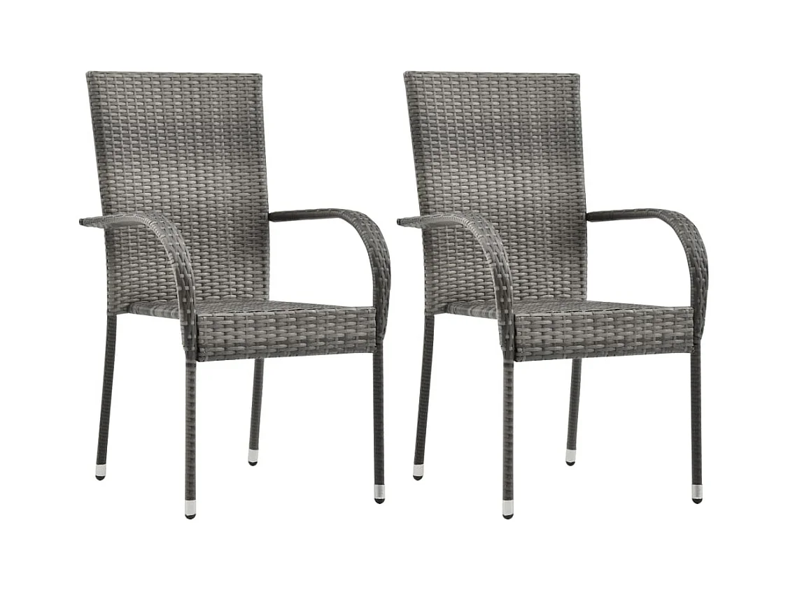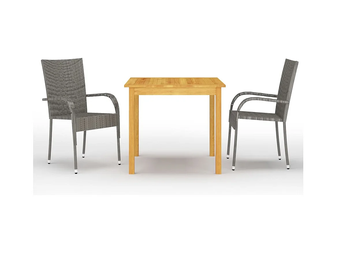 3 pcs conjunto de bistrô vime PE e madeira de acácia cinzento PT579290