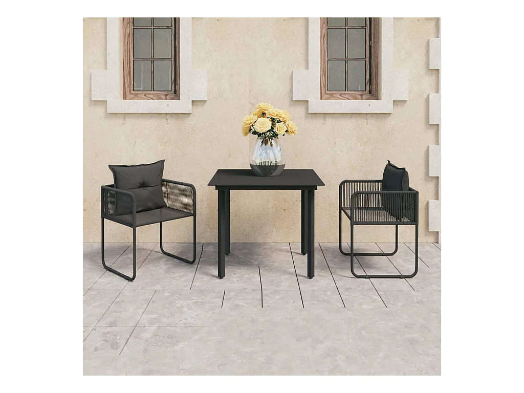3 pcs conjunto de jantar para jardim vime de PVC preto PT781571