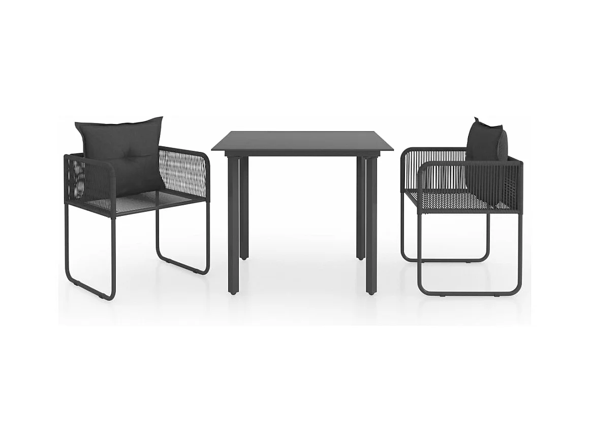 3 pcs conjunto jantar exterior com almofadões vime PE preto PT354768