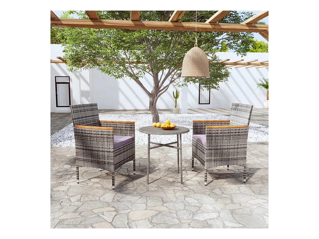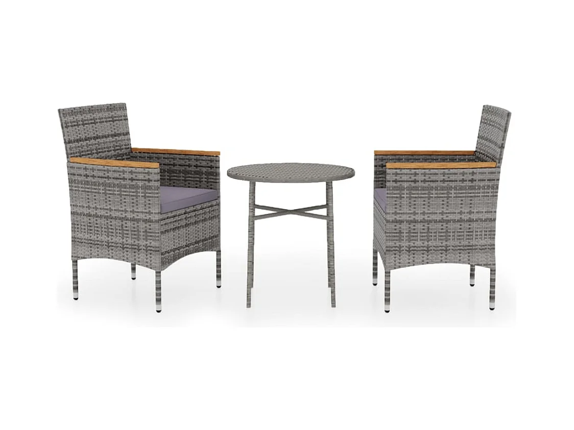 3 pcs conjunto bistrô para jardim vime PE e vidro cinzento PT381146