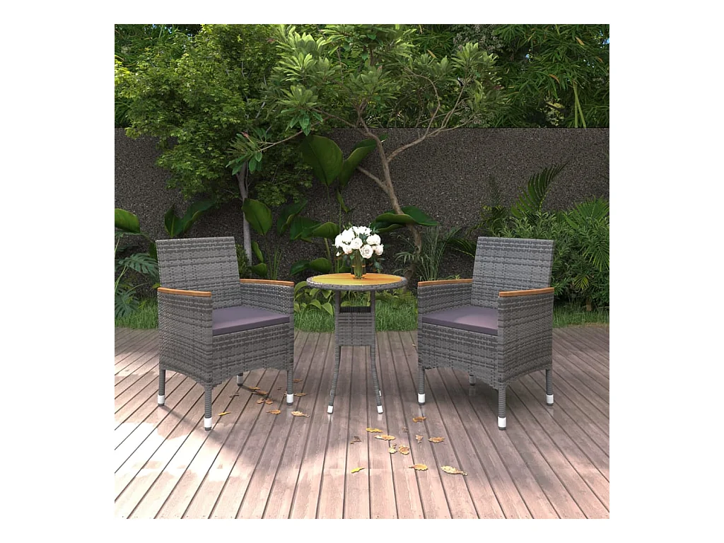3 pcs conjunto de bistrô com almofadões vime PE/acácia cinza