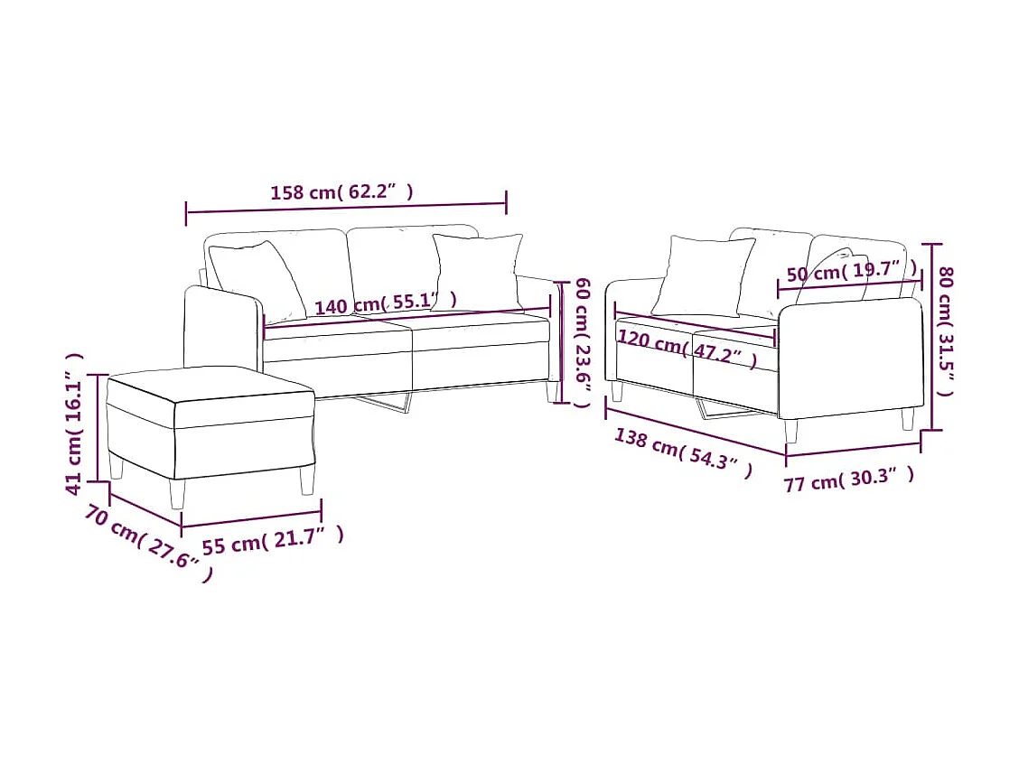 3 pcs conjunto de sofás com almofadas tecido vermelho-tinto