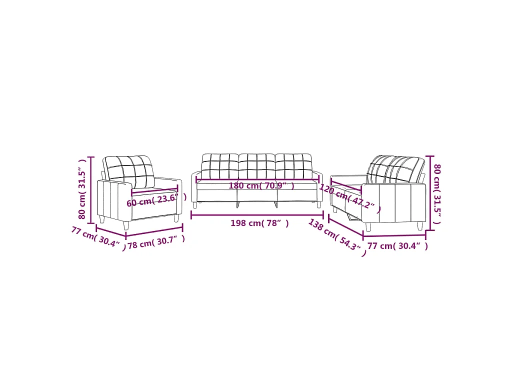 3 pcs conjunto de sofás com almofadões tecido castanho