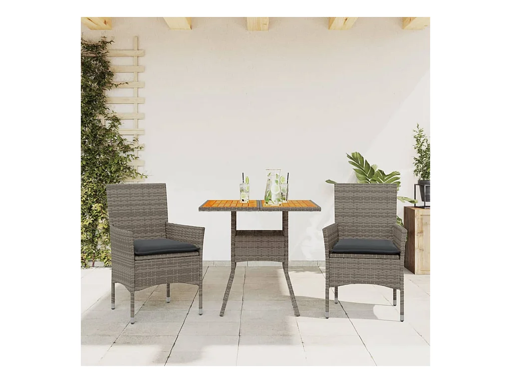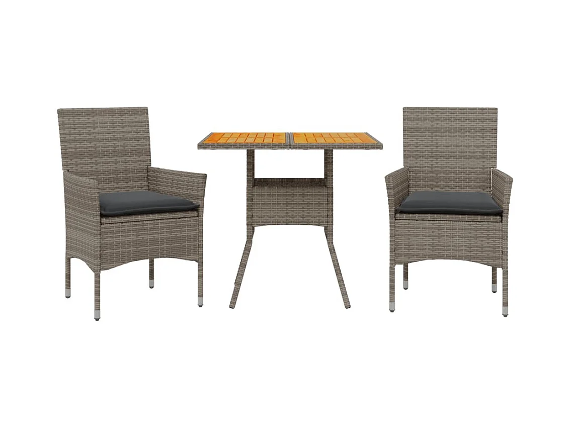 3 pcs conjunto jantar jardim c/ almofadões vime PE/acácia cinza PT184506