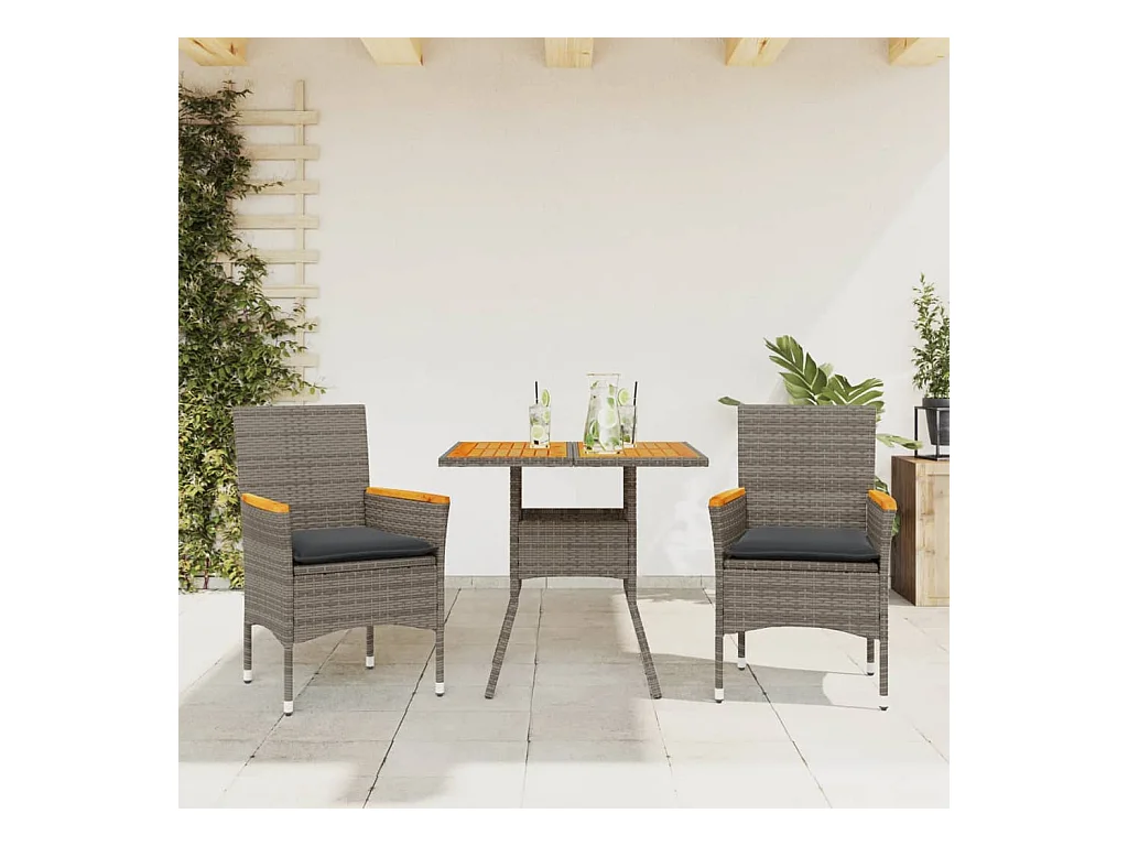 3 pcs conjunto jantar jardim c/ almofadões vime PE/acácia cinza PT184506