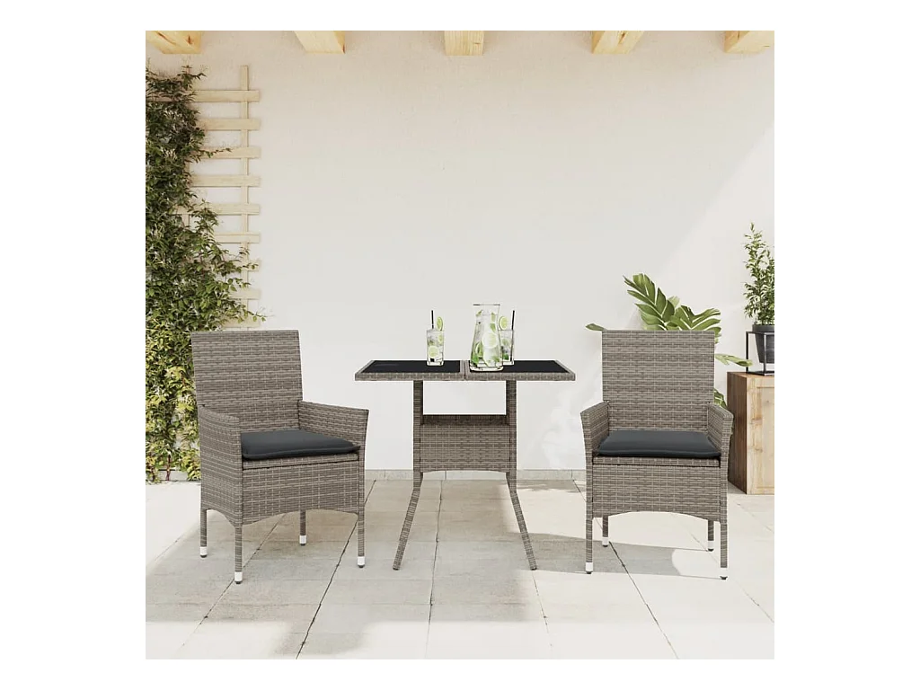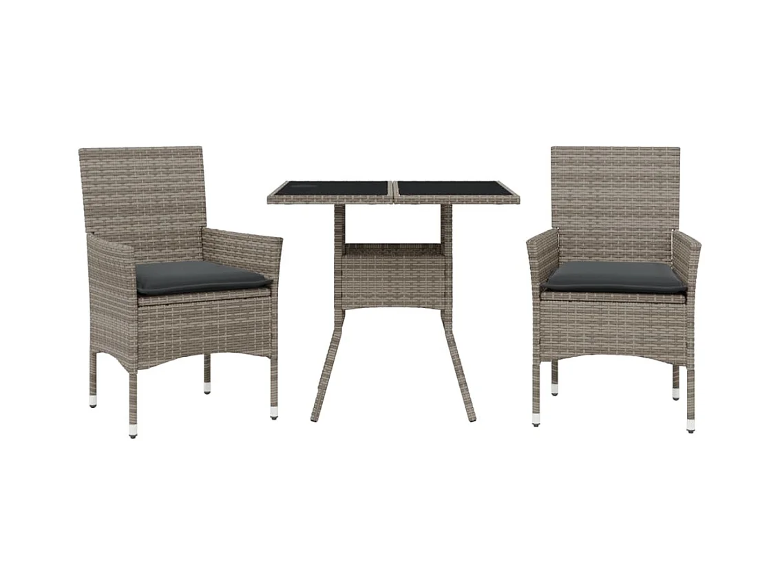 3 pcs conjunto jantar jardim c/ almofadões vime PE/vidro cinza PT299101
