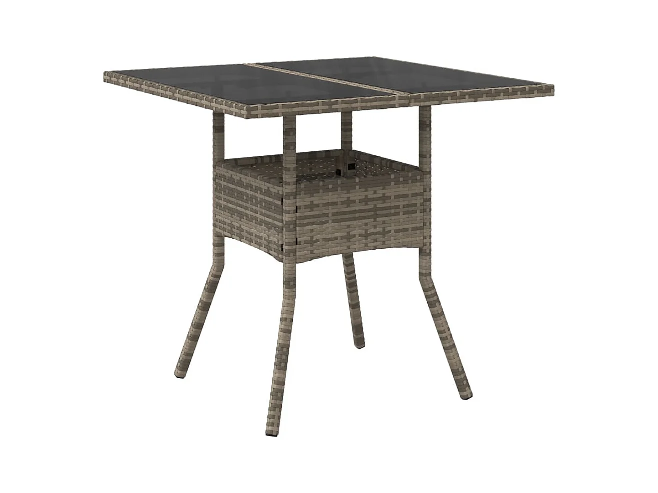 3 pcs conjunto jantar jardim c/ almofadões vime PE/vidro cinza PT799193