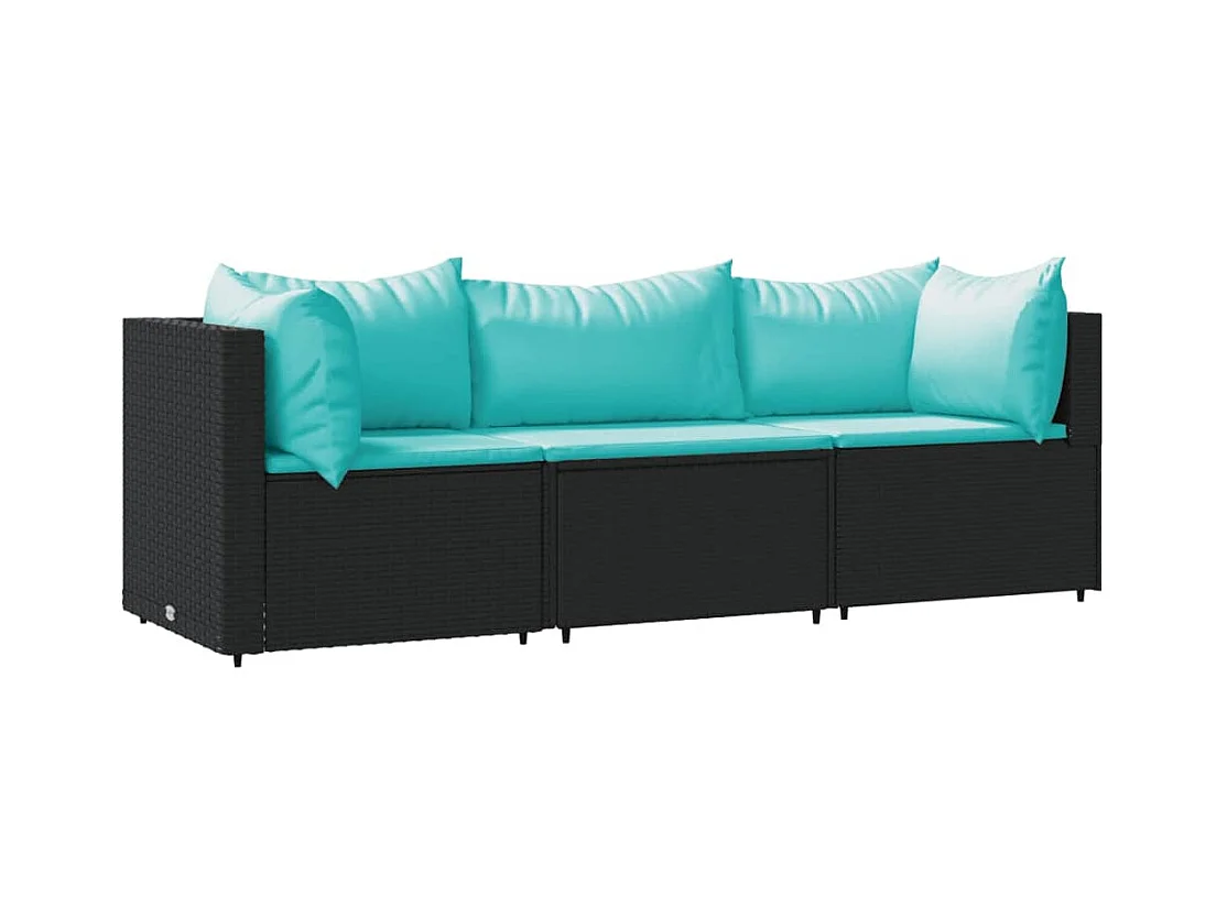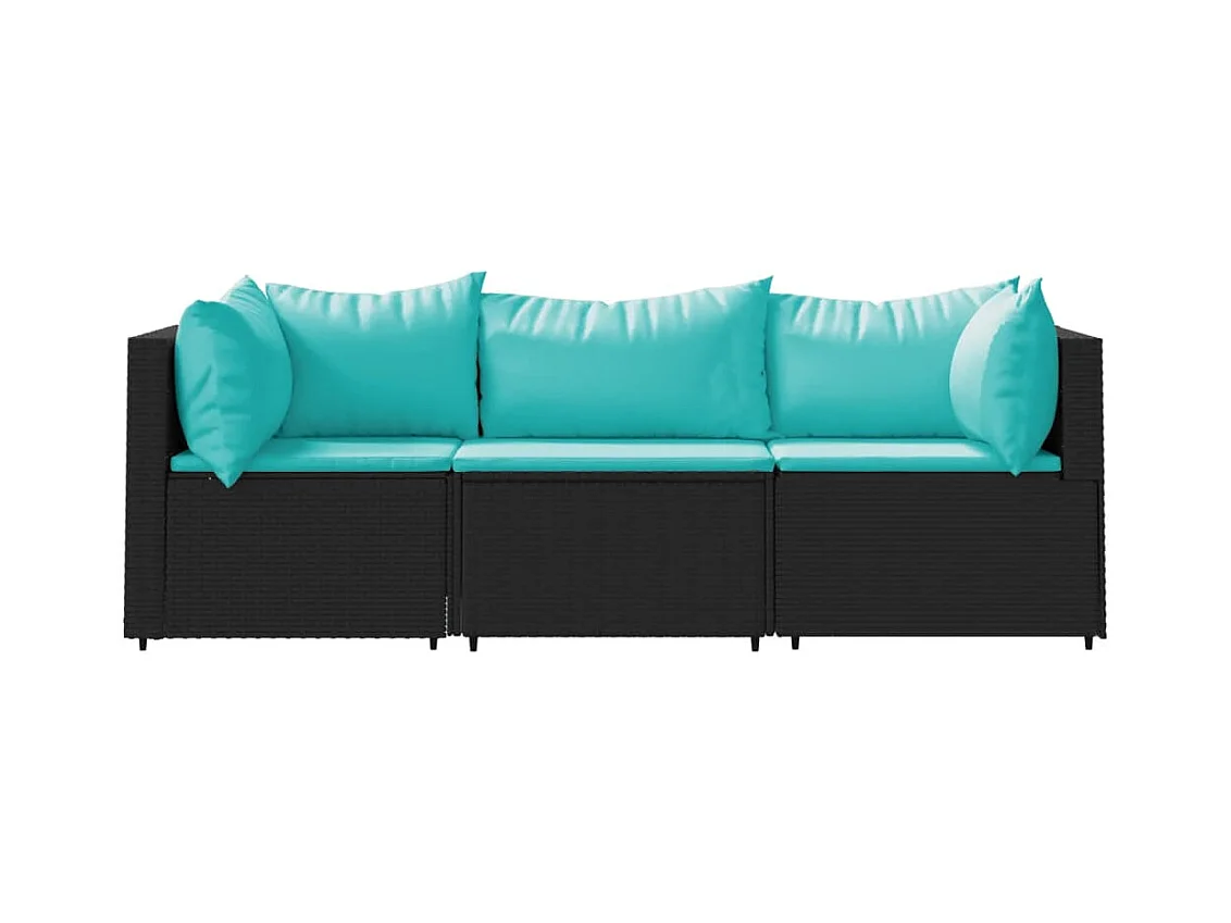 3 pcs conjunto lounge de jardim c/ almofadões vime PE preto PT801917