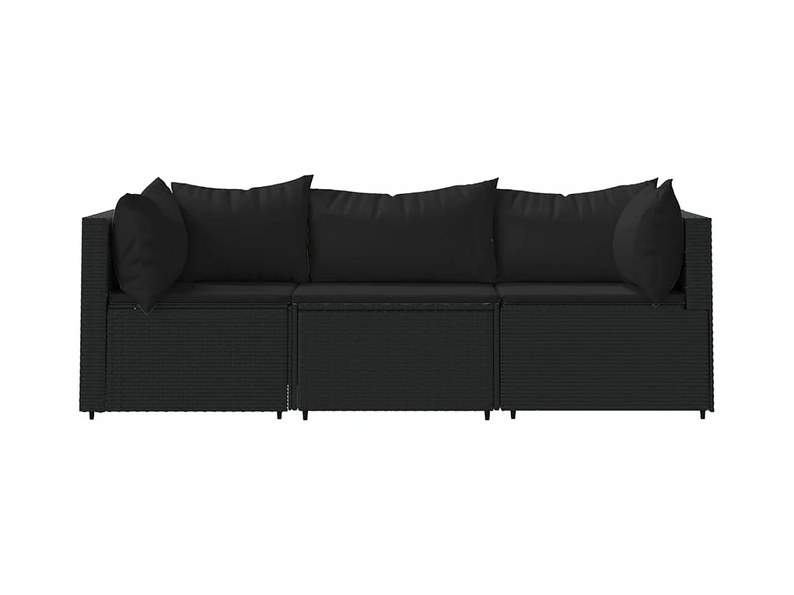 3 pcs conjunto lounge de jardim c/ almofadões vime PE preto PT801917