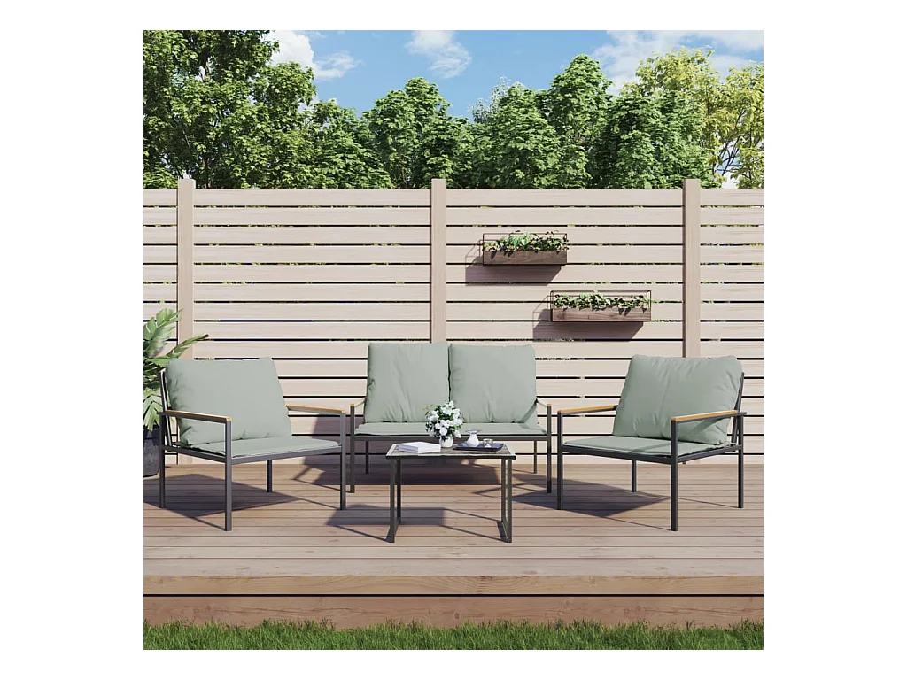 4 peças conjunto lounge de jardim com almofadões aço antracite