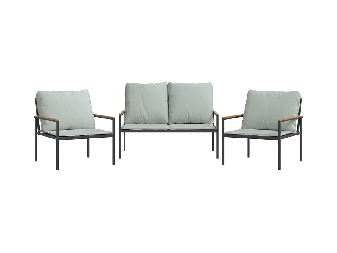 3 pcs conjunto lounge de jardim com almofadões aço antracite PT10268