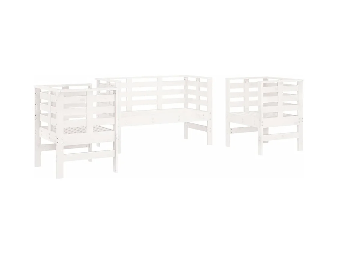 3 pcs conjunto lounge de jardim madeira de pinho maciça branco PT77235