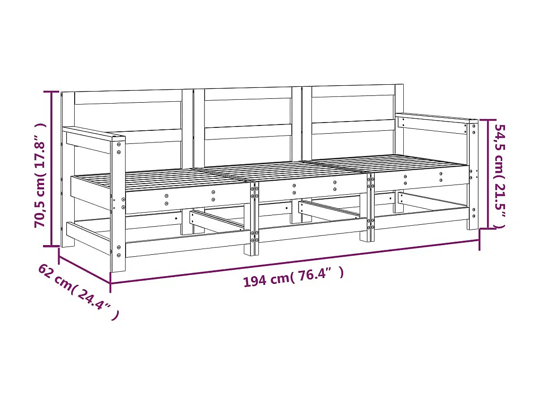 Móveis de jardim 3 unidades em madeira de pinho maciça cinza