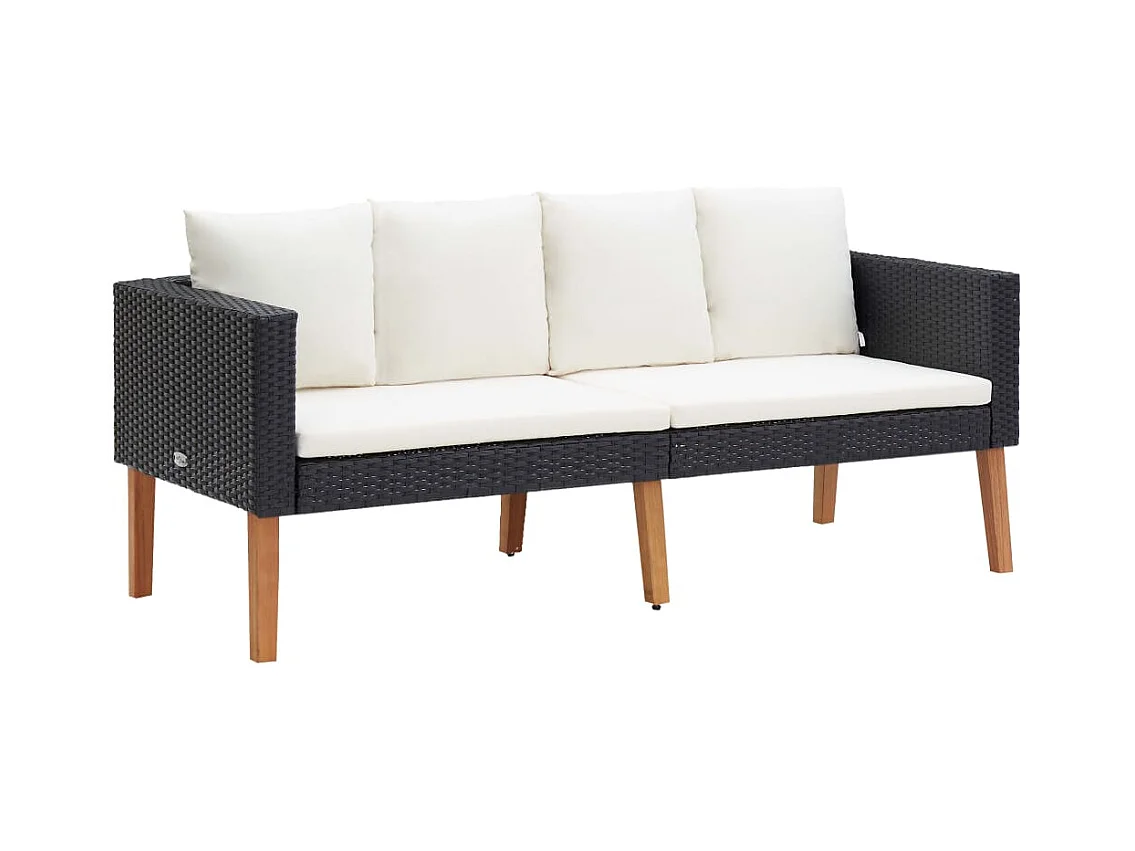 3 pcs conjunto lounge de jardim c/ almofadões vime PE preto PT34912