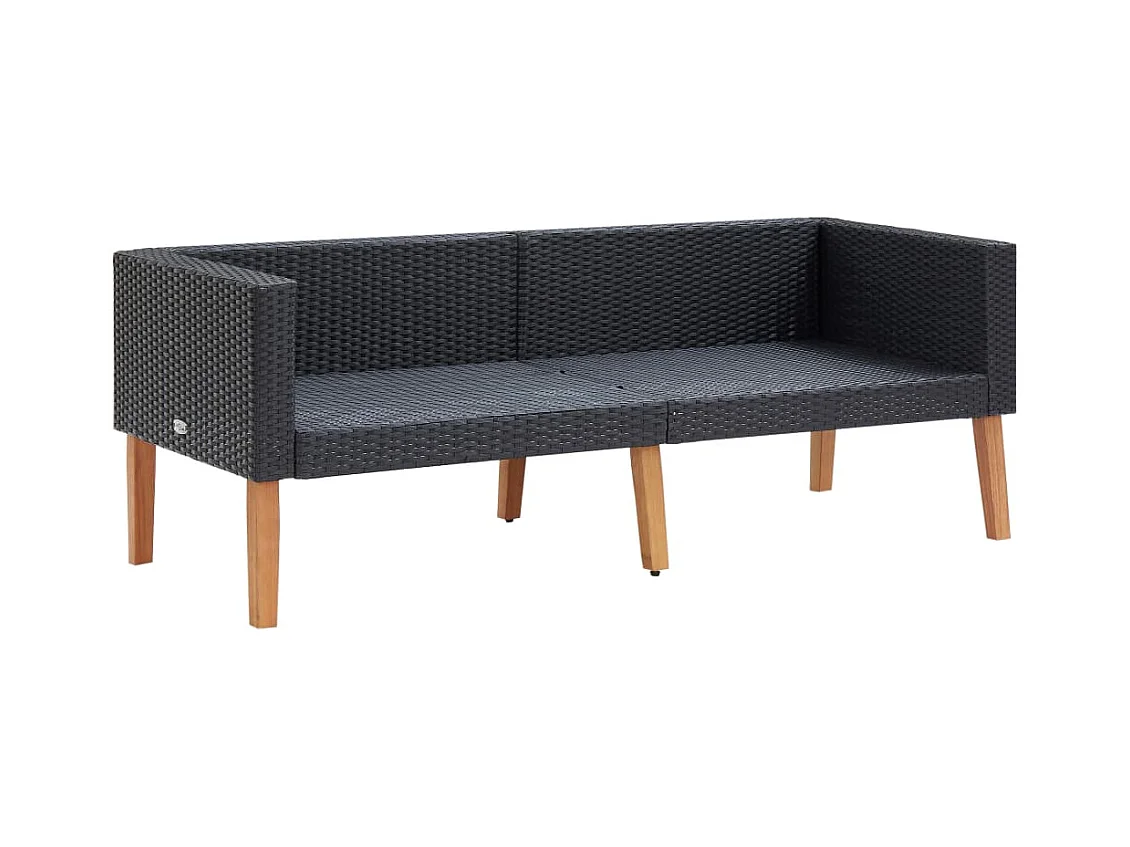 3 pcs conjunto lounge para jardim c/ almofadões vime PE preto PT15415