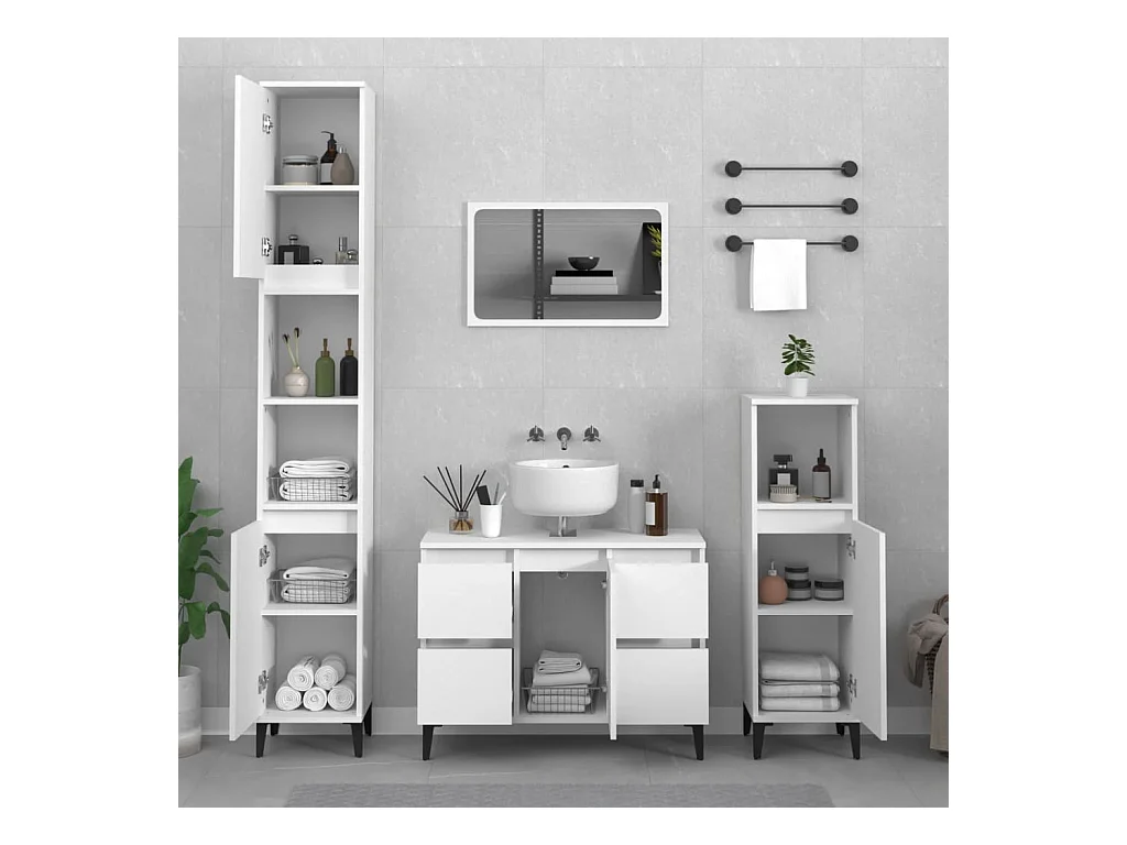 Conjunto de móveis de casa de banho branco alto brilho 60x33x60 ilias
