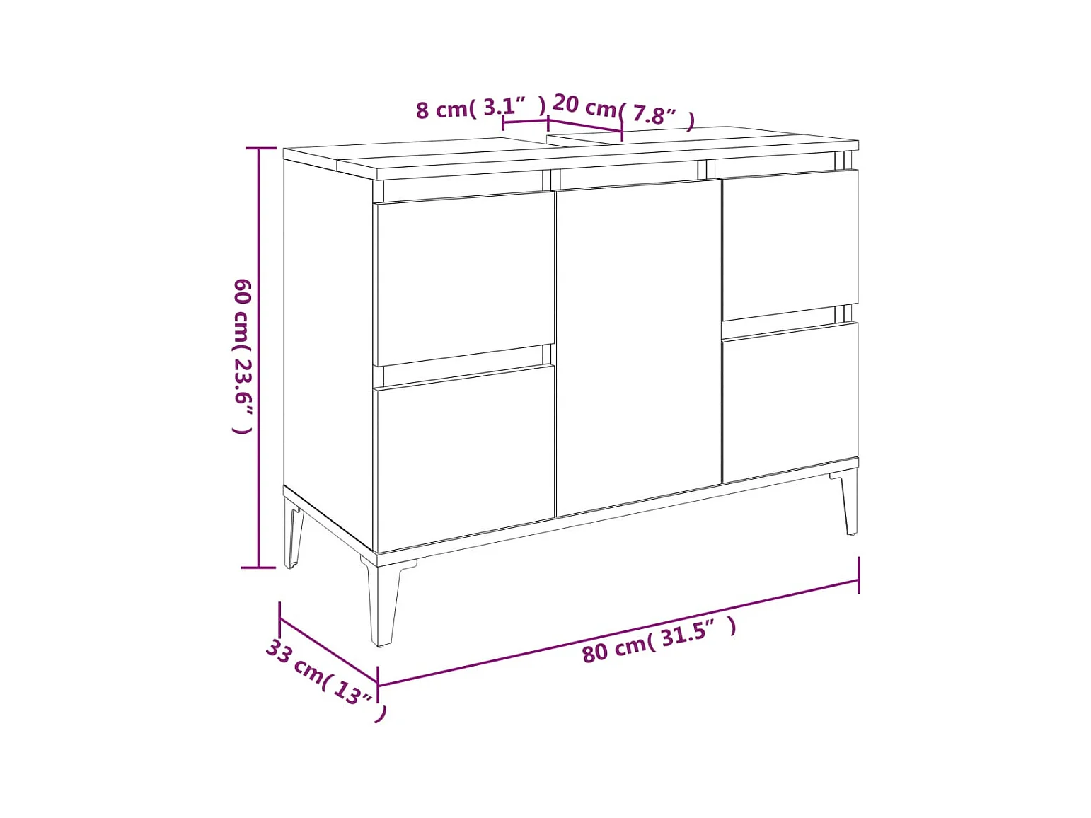 Badmöbel-Set branco/cinza 60x45.5x60 viola