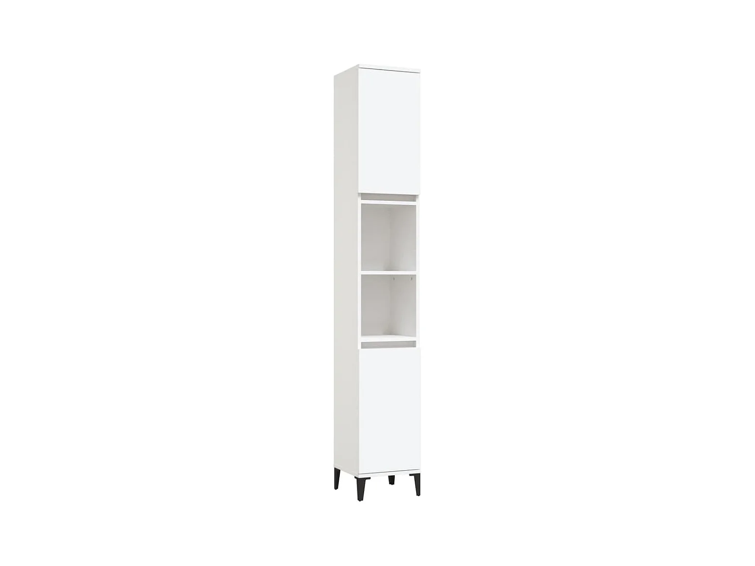 Conjunto de casa de banho suspenso com lavatório, 2 colunas e armário espelhado, corpo branco mate / frentes branco brilhante