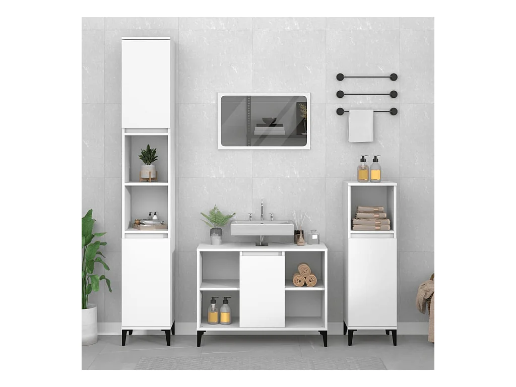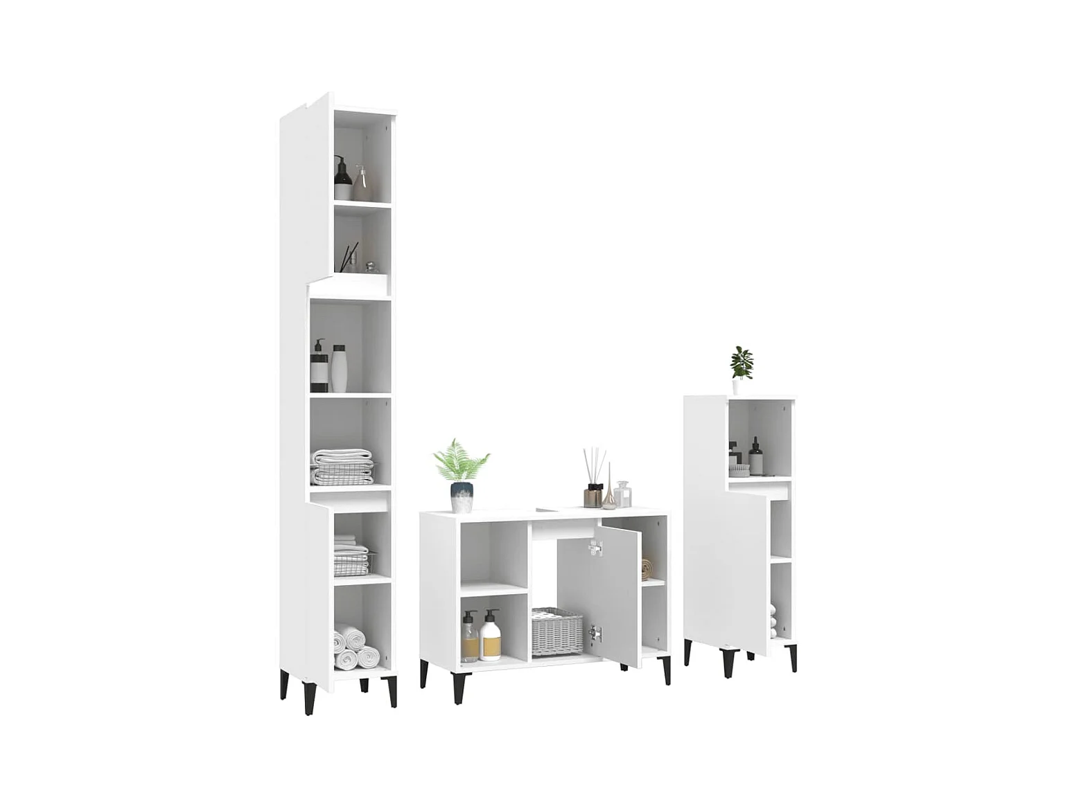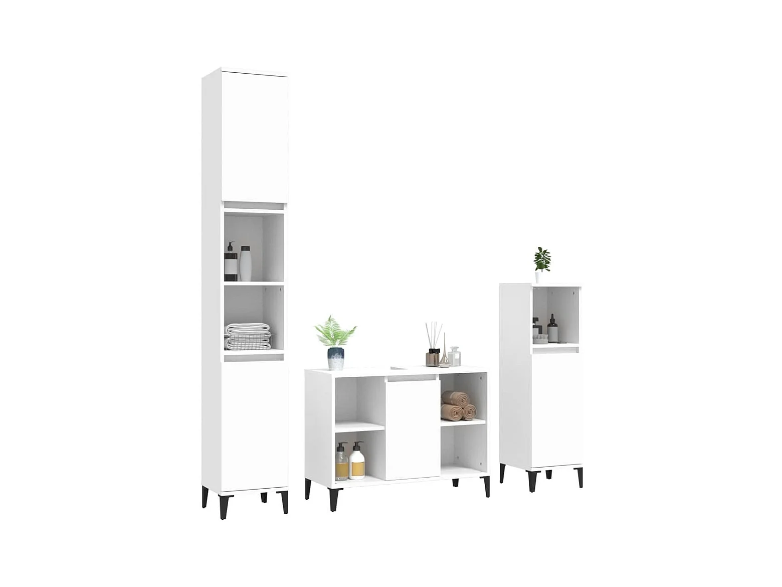 3 pcs conjunto móveis casa de banho derivados de madeira branco PT991679