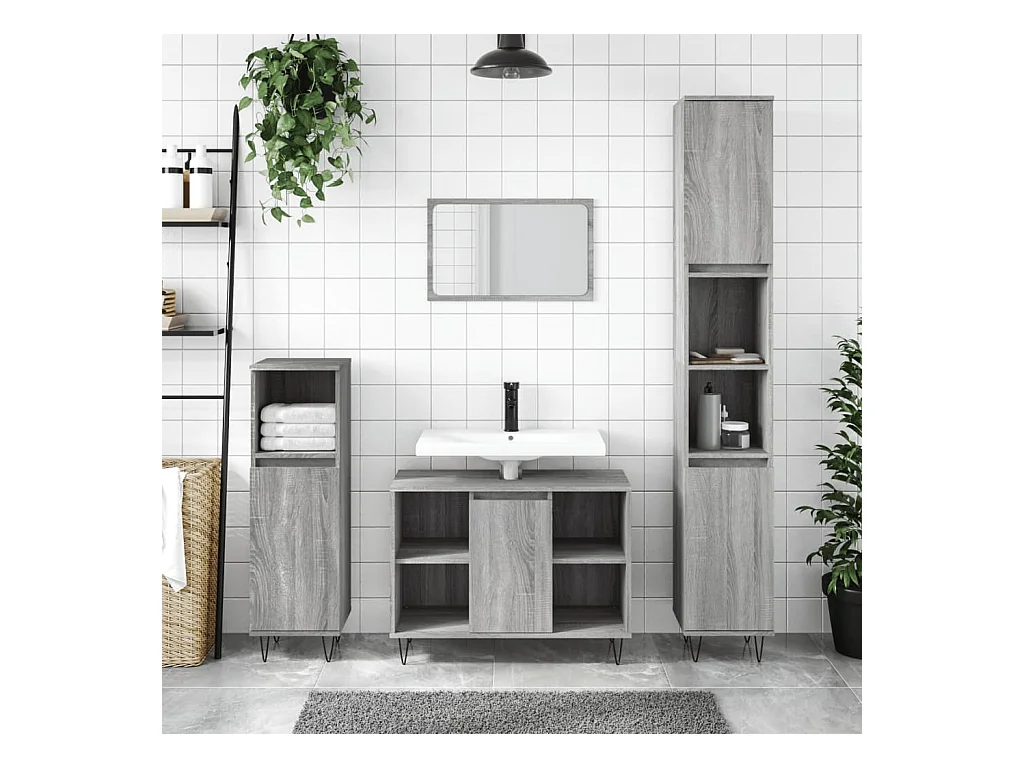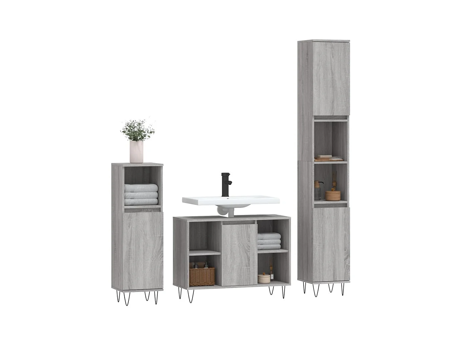 3 pcs Conjunto móveis casa de banho madeira proc. cinza sonoma PT243872
