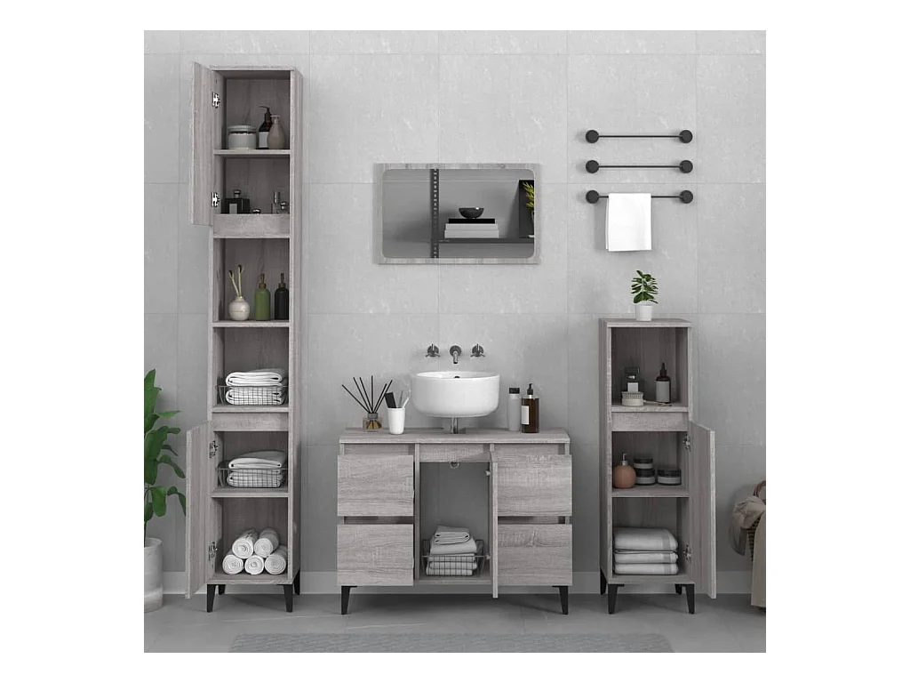 3 pcs Conjunto móveis casa de banho madeira proc. cinza sonoma PT752161