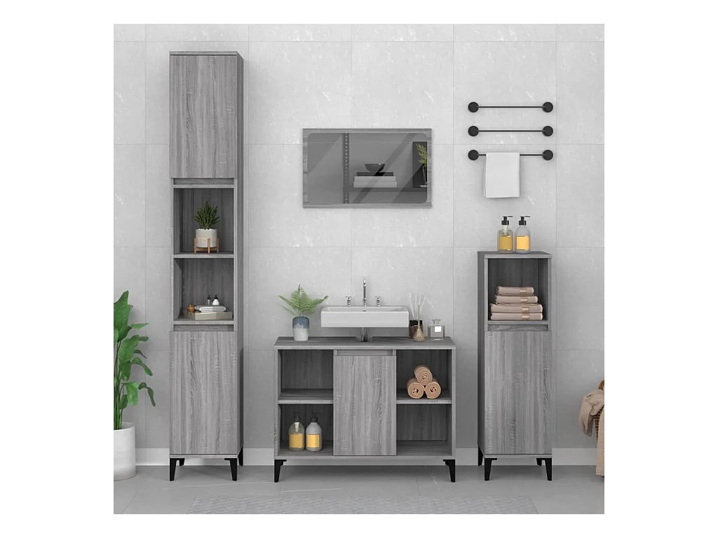 3 pcs Conjunto móveis casa de banho madeira proc. cinza sonoma PT431072