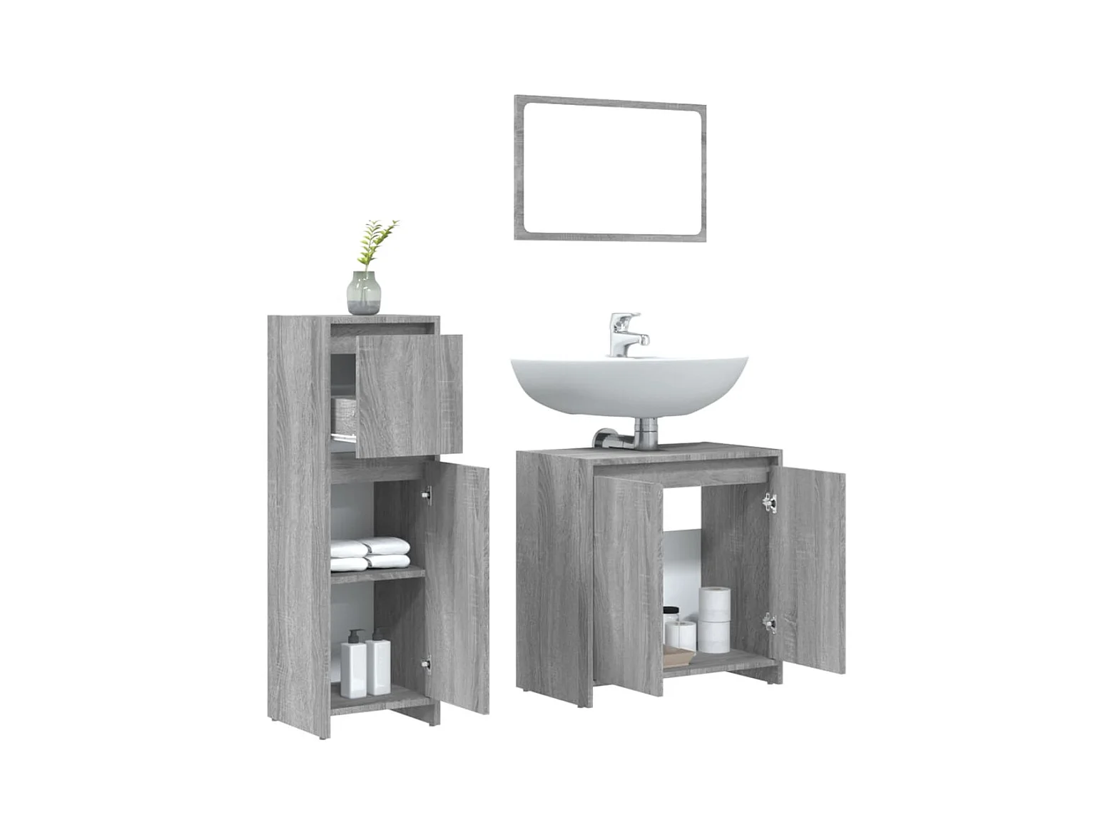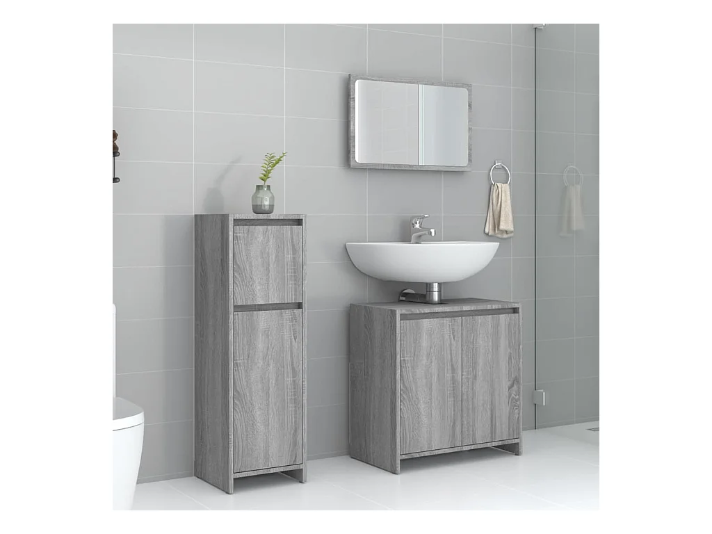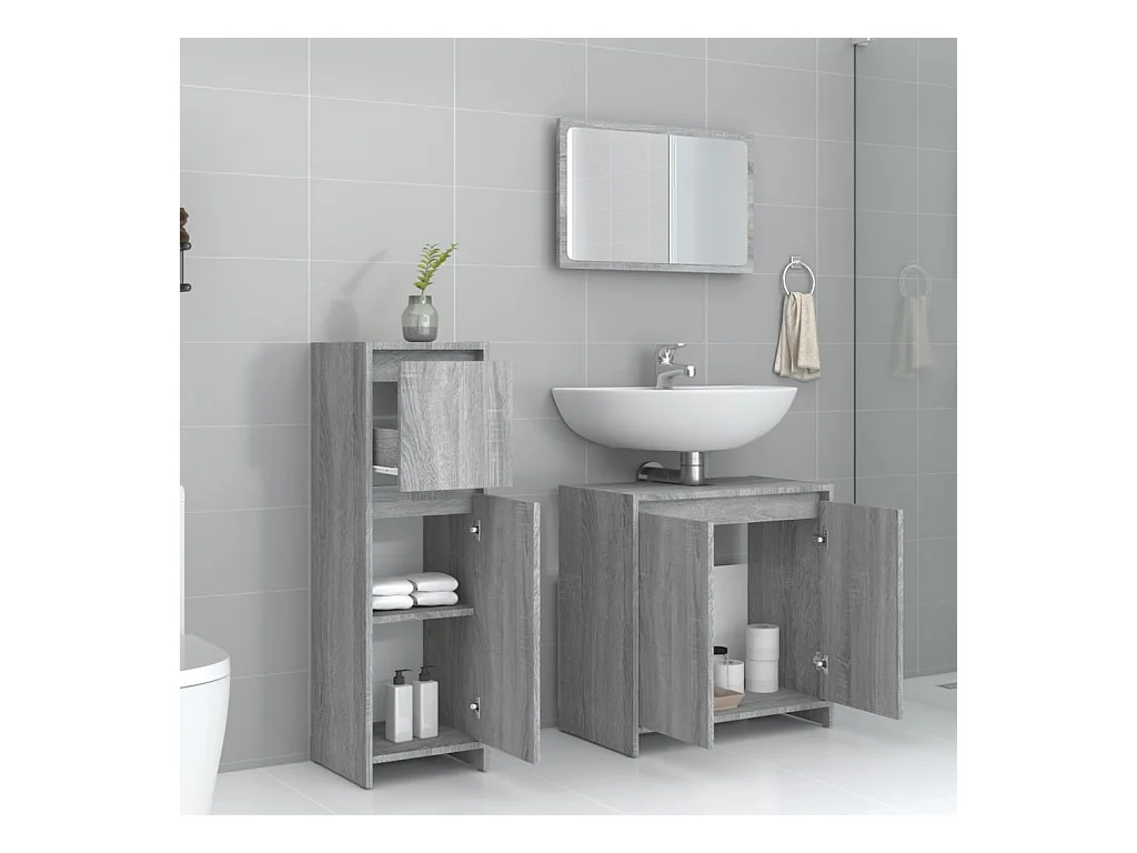 3 pcs Conjunto móveis casa de banho madeira proc. cinza sonoma PT431072