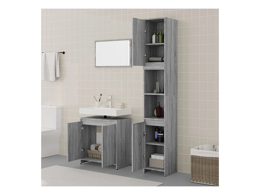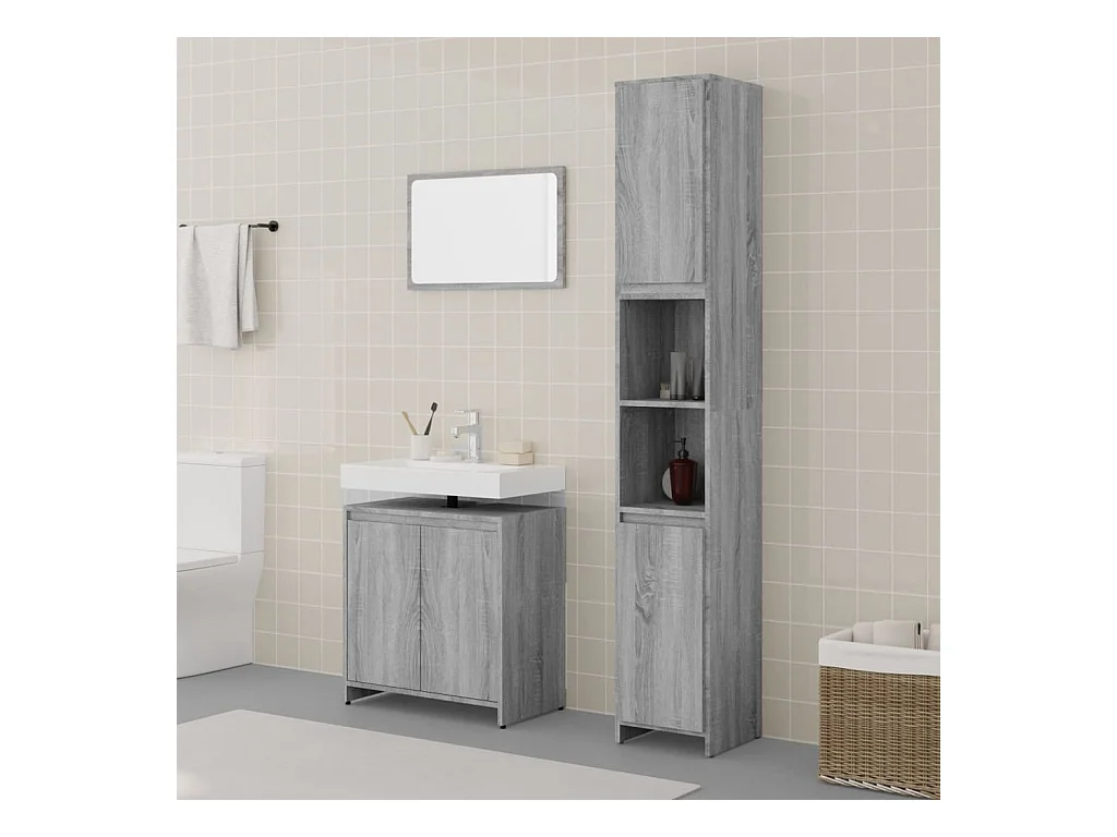 3 pcs Conjunto móveis casa de banho madeira proc. cinza sonoma PT504517