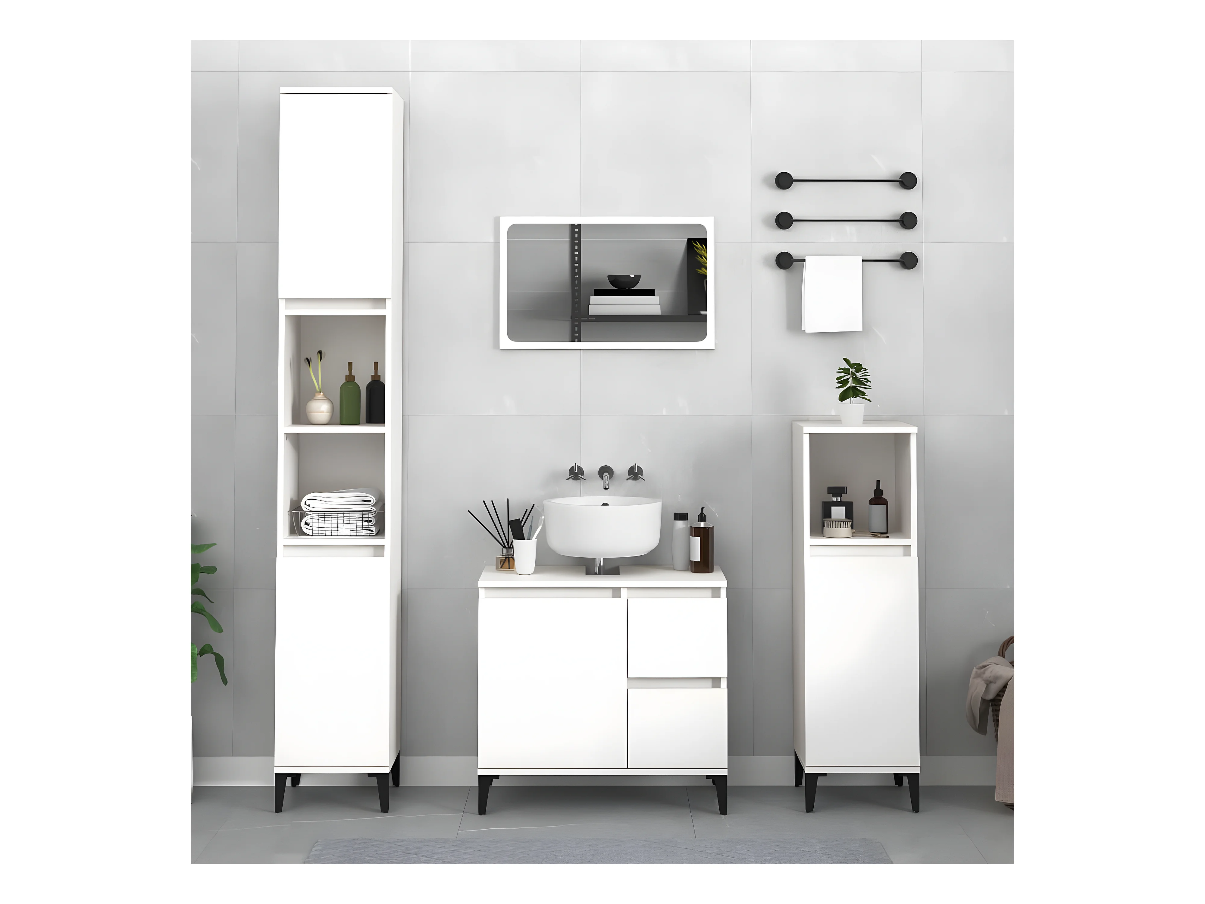 3 pcs conjunto móveis casa de banho madeira processada branco PT500948